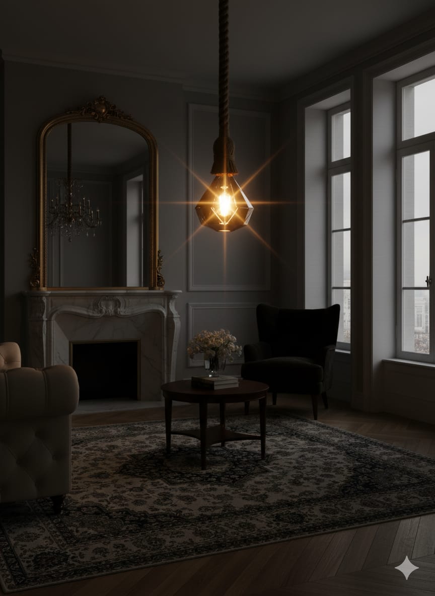 The star of this piece is the extraordinary faceted, amber-tinted glass bulb, meticulously cut to resemble a sparkling gemstone. 💡 When lit, its internal Edison filament casts a warm, inviting glow that refracts through the facets, creating a mesmerizing play of light and shadow in your room. 🧡